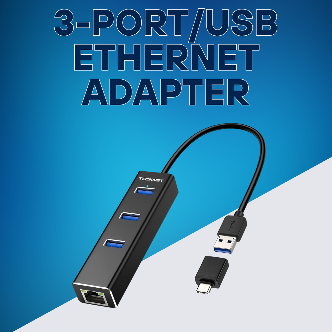 3-Port USB 3.0 Hub w/RJ45 Ethernet Adapter